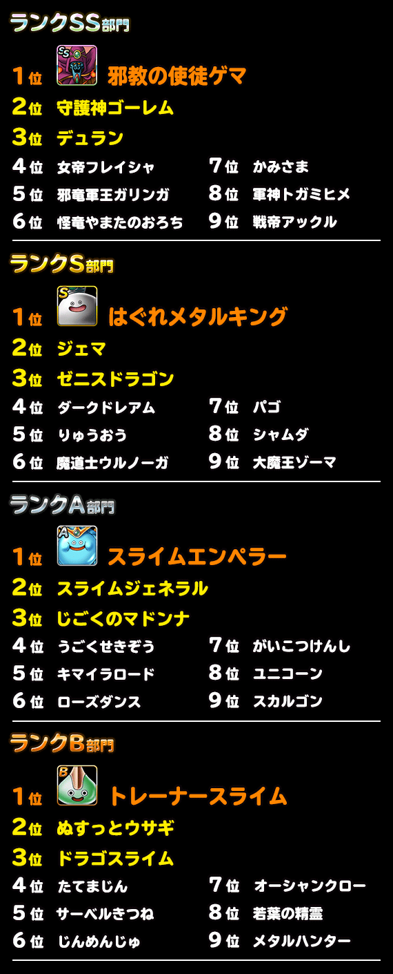 第10回モンスター人気投票 新生転生お願いアンケート 実施 年4月8日 追記 ドラゴンクエストモンスターズ スーパーライト Square Enix Bridge